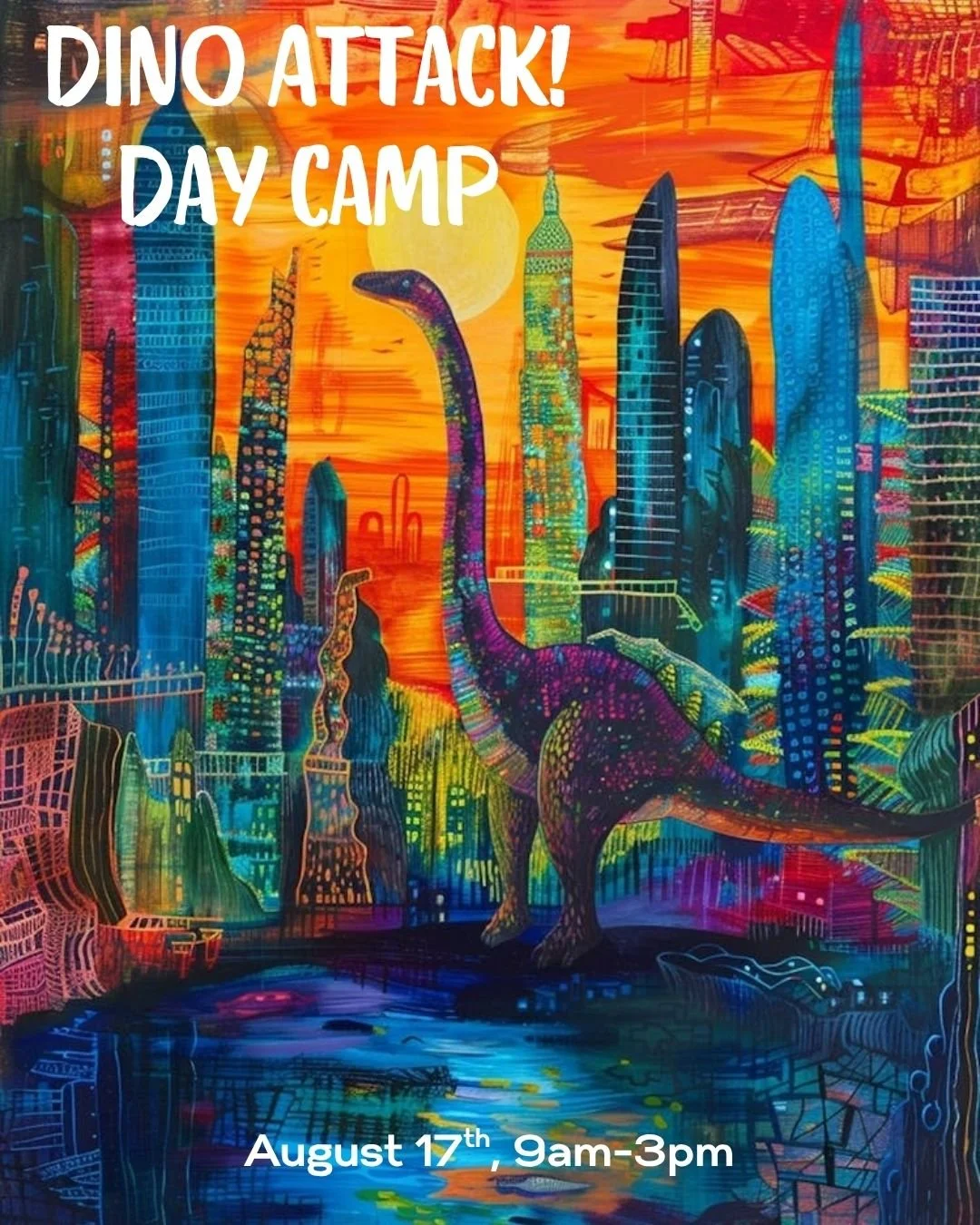 At this creative day camp, artists will use printmaking, painting, and drawing to design and assemble a mixed-media dinosaur cityβa finished artwork thatβs take-home ready to display!β¨ What weβll do: