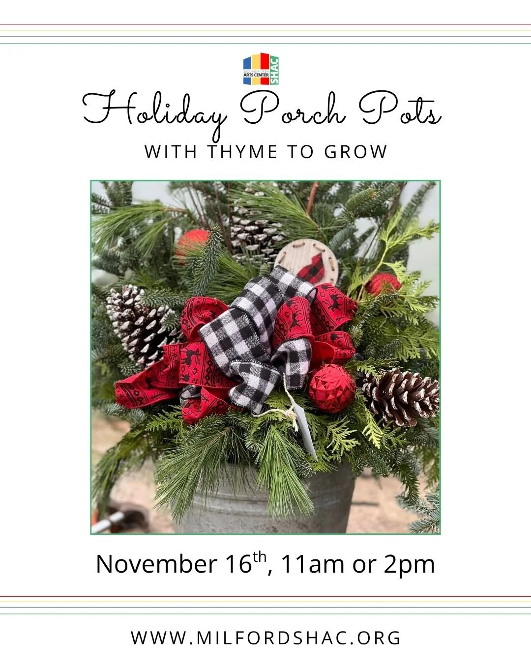 Kick off the season with style! Join us for our Holiday Porch Pots Workshop—a festive collaboration with Thyme to Grow!