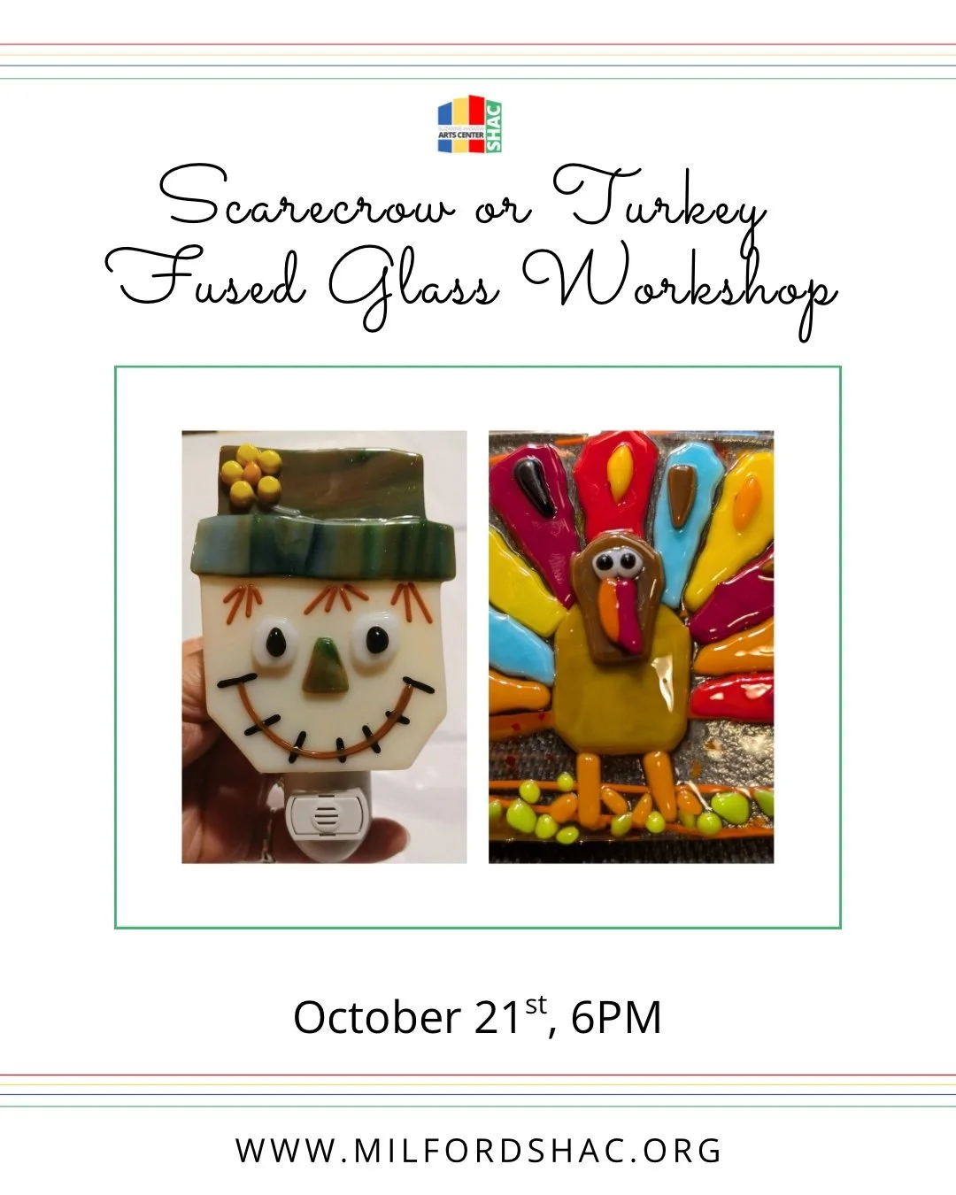 Join us for this adorable Scarecrow or Turkey fused glass night light or tealight project.