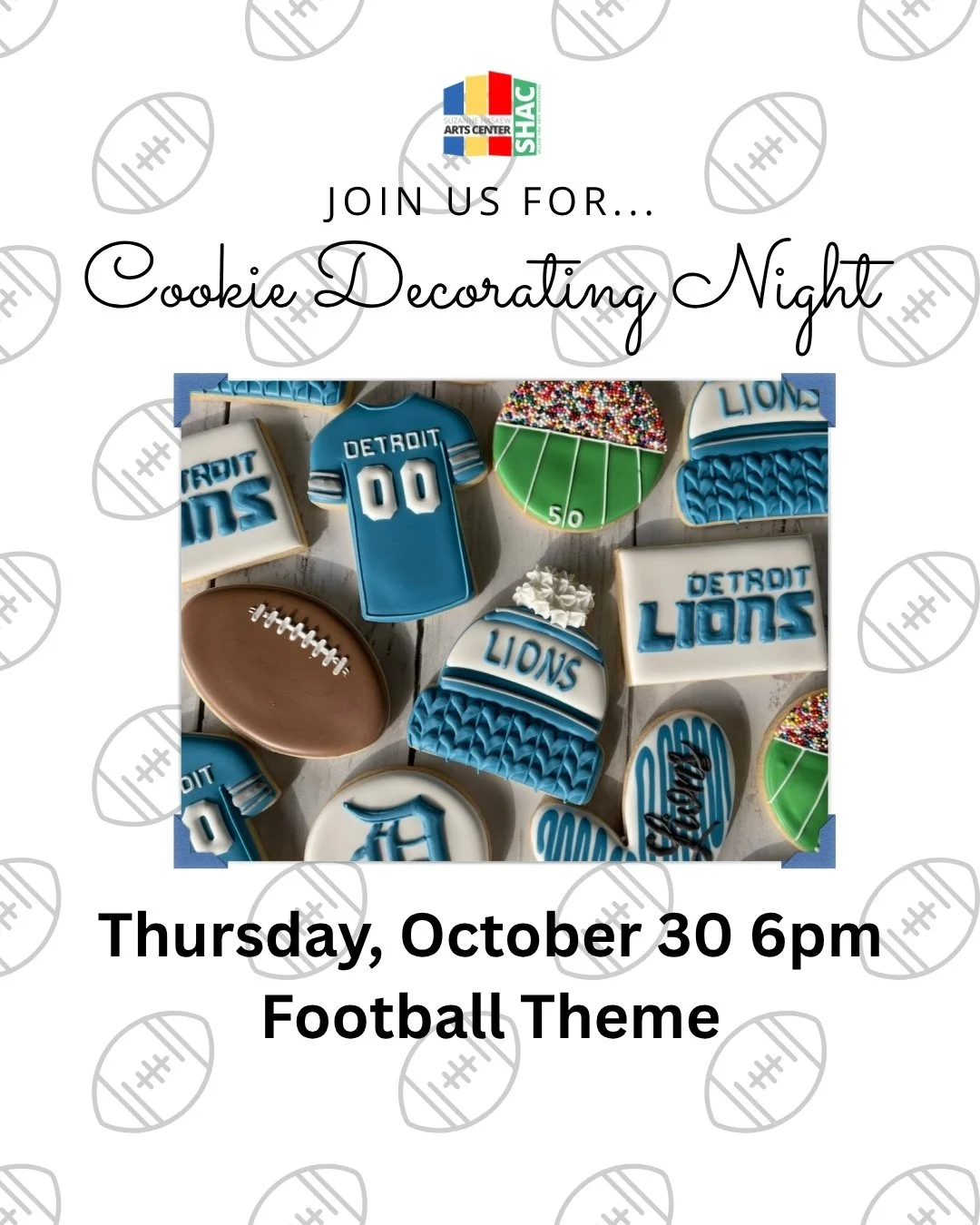 Join us for a cookie decorating experience and an evening of fun, laughter, and new skills! Kristel’s Cookie Creations will guide you through each step of the process in decorating 5 custom cookies. This class is perfect for all skill levels; beginners and experienced are both welcomed. By the end of each session, you will have learned basic piping and flooding techniques and will go home with a box of beautifully decorated cookies. goes here