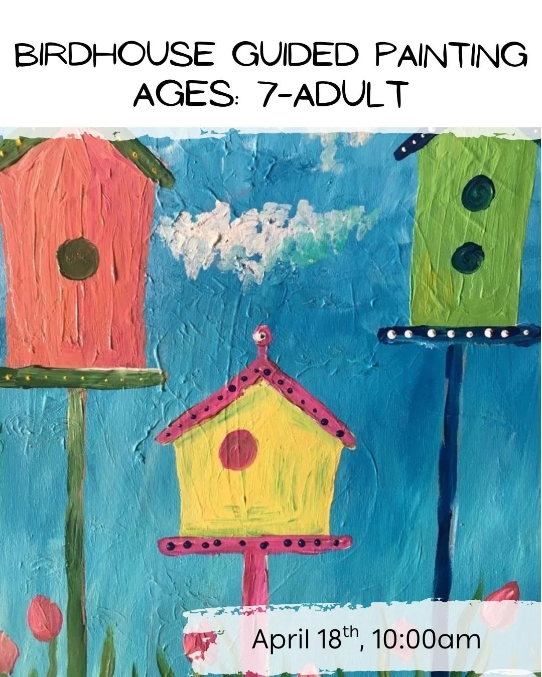 Let your inner artist get creative with this fun spring themed painting class! Students will follow step-by-step instructions to create their own adorable birdhouse masterpiece. No experience needed—just imagination and enthusiasm! 🎨